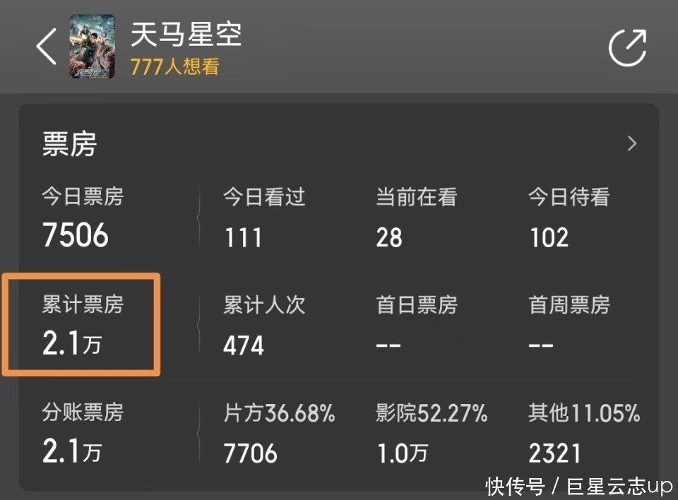 业内人士爆料,《天马星空》本质上是一部网络电影,院线票房扑街也是显而易见的,之所以上院线,其实答案很简单。